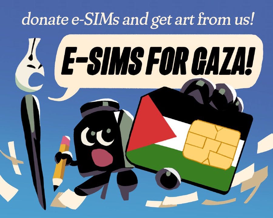 Artist for GAZA eSIMs 🇵🇸 ROUND 2! on X: "🇵🇸 E-SIM FOR GAZA DONATION GIFT 🇵🇸 Donate an E-SIM to #connectinggaza and redeem ART from us! 💚 🖇 more info below! https://t.co/9sHqDGFk2I" /