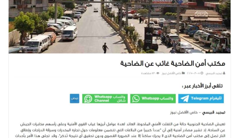 - כלי תקשורת המקורבים לחיזבאללה אמרו כי השנה התעלמו מעשרות דיווחים על סחר בסמים, גניבת אופניים וירי בפרברים הדרומיים.