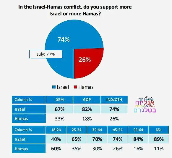 25-34: 65% תומכים בישראל, 35% בחמאס.