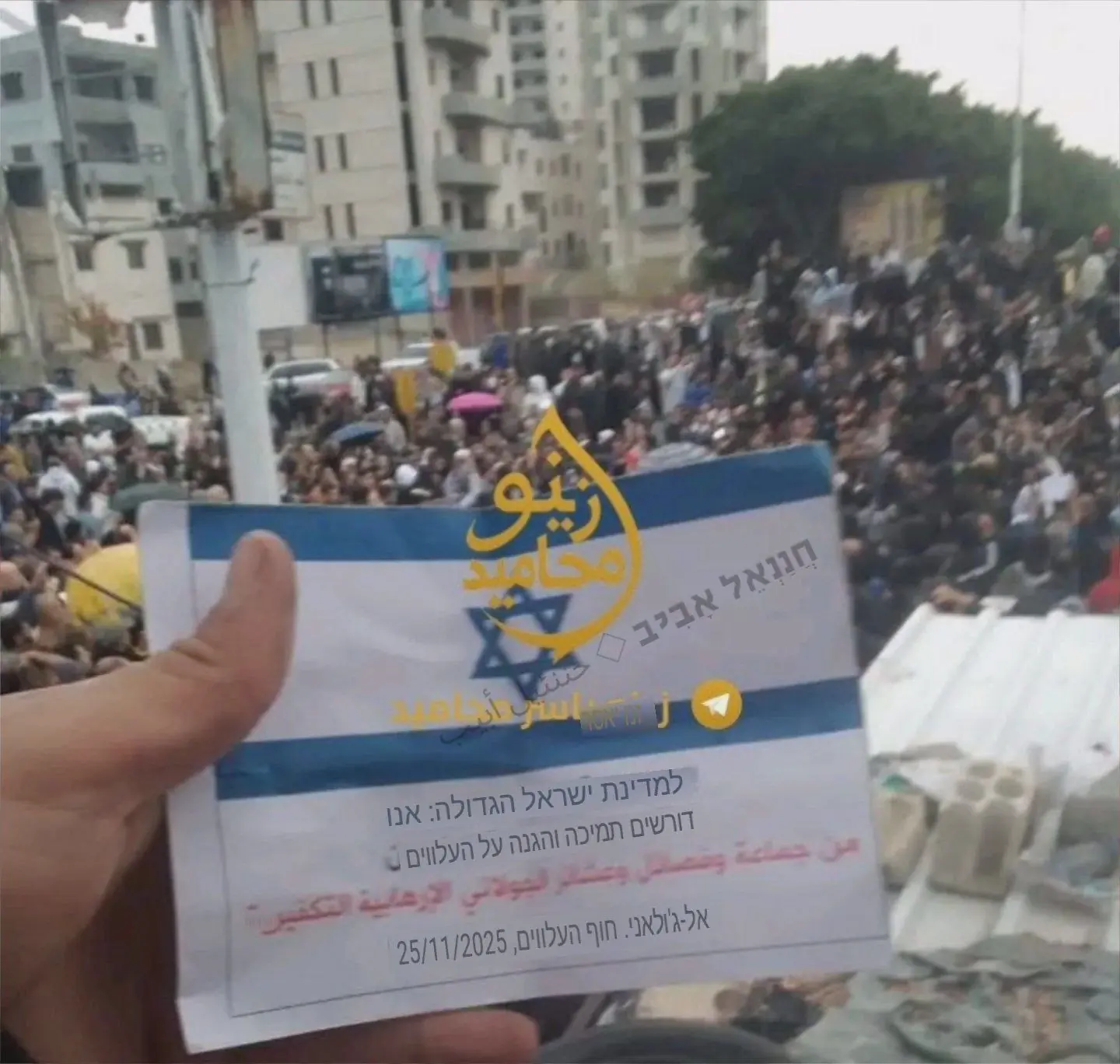 בהפגנות העלווים בחוף הסורי הונפו כרוזות המבקשות את הגנת המיעוט העלווי ע”י מדינת ישראל.