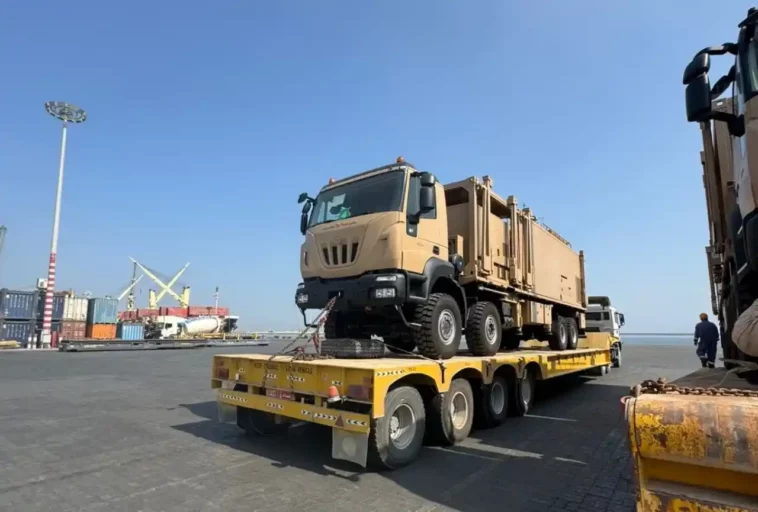 תמונות שפורסמו על ידי חברת Al Badr Transport LLC מראות העברה של מספר כלי רכב צבאיים מיוחדים עם הגעתם לנמל בעומאן. על פי משקיפים שניתחו את הציוד בתמונות, כלי רכב אלה הם רכיבים של מערכת ההגנה בלייזר מפני כטב”מים משולבת של סין, SkyShield, שהועברו ממתקן אחסון.