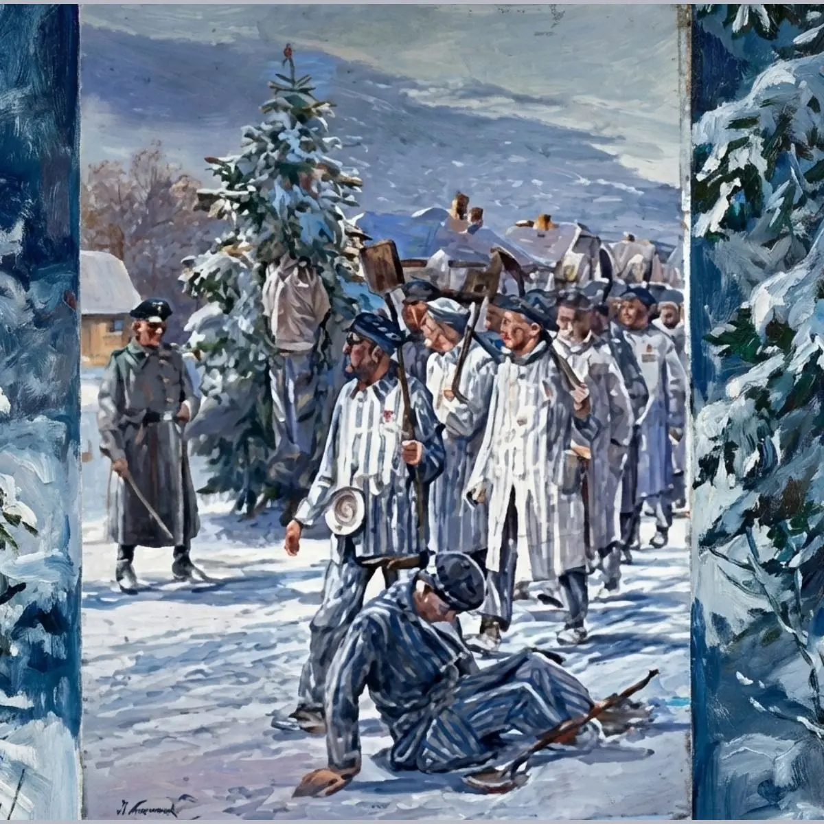 קרדיט: קריקטורות בטלגרם קרדיט לתמונה: עיטורי עץ המולד באושוויץ. איור: יאן קומסקי, אושוויץ