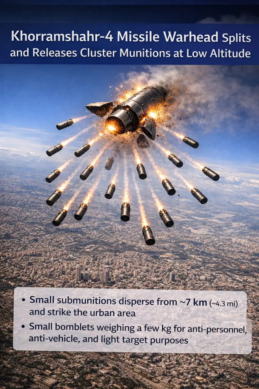 ב. ראש הקרב של הטיל יכול להתפצל לעשרות תתי חימוש קטנים, לעיתים גם 80 ראשי קרב קטנים במשקל של עד 5 ק"ג כל אחד.