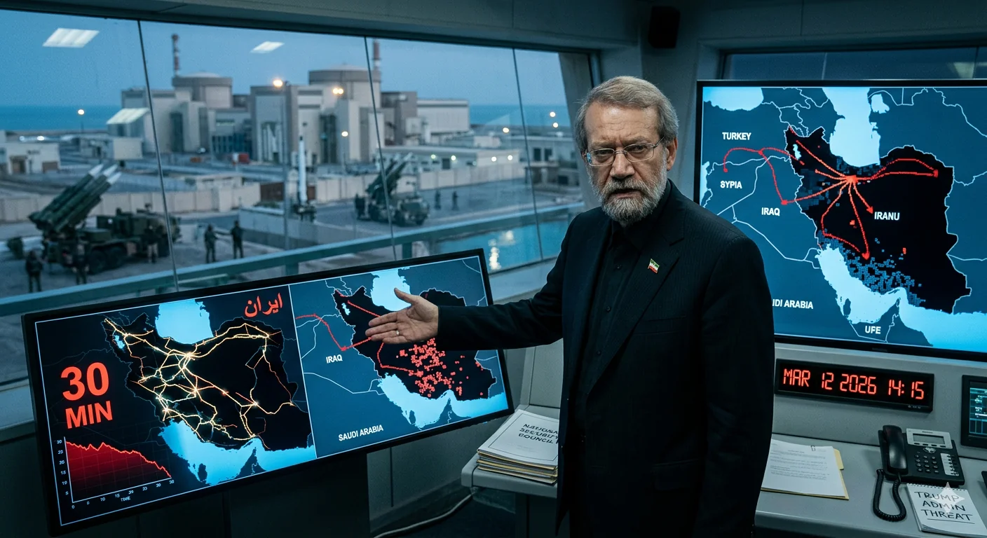 לאריג'אני התריע כי אם רשת החשמל האיראנית תושמד או תשותק באופן משמעותי, האזור כולו (ובפרט מדינות שכנות התלויות באספקת אנרגיה איראנית) עלול להתמודד עם הפסקת חשמל מוחלטת בתוך 30 דקות.