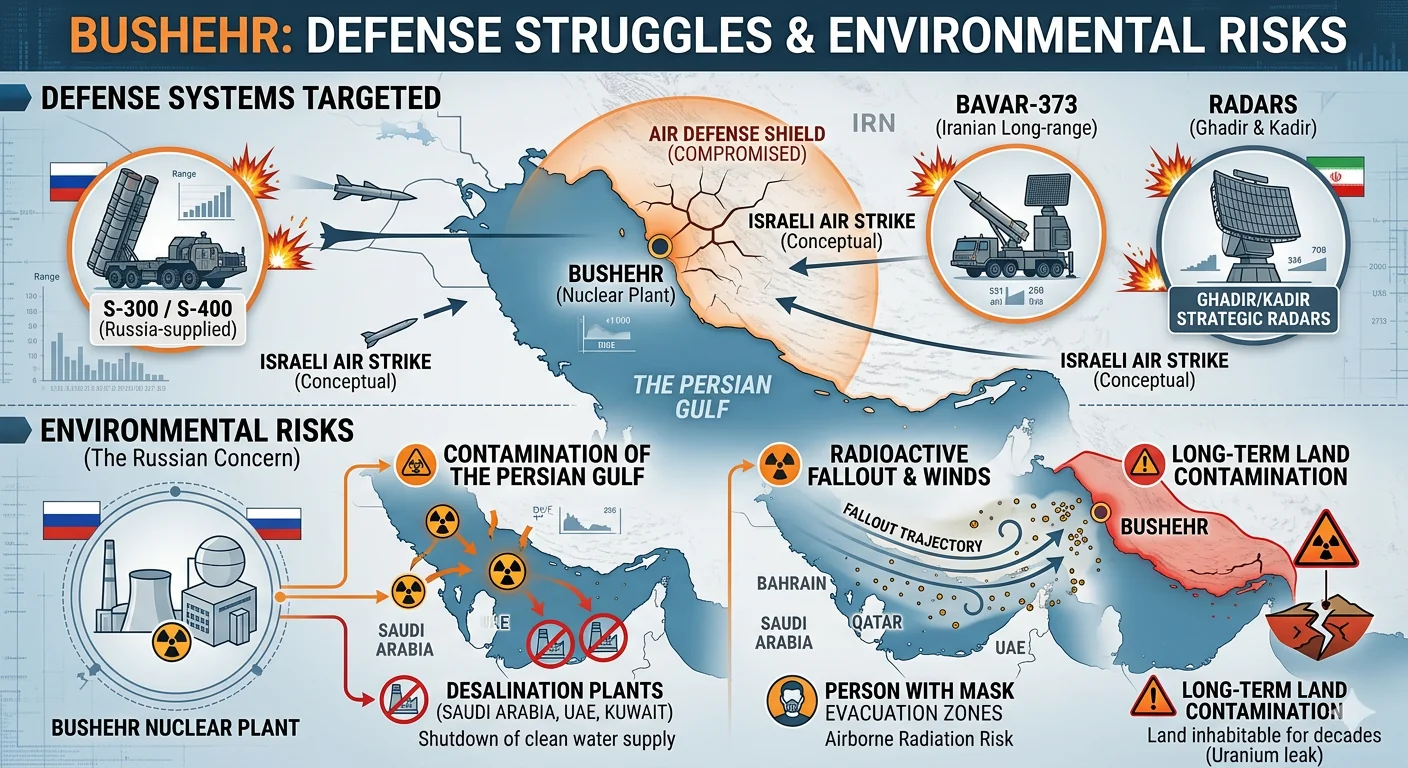 על בסיס האירועים האחרונים בבושהר, להלן פירוט מערכות ההגנה שהיו במוקד והסיכונים הסביבתיים שרוסיה חוששת מהם: