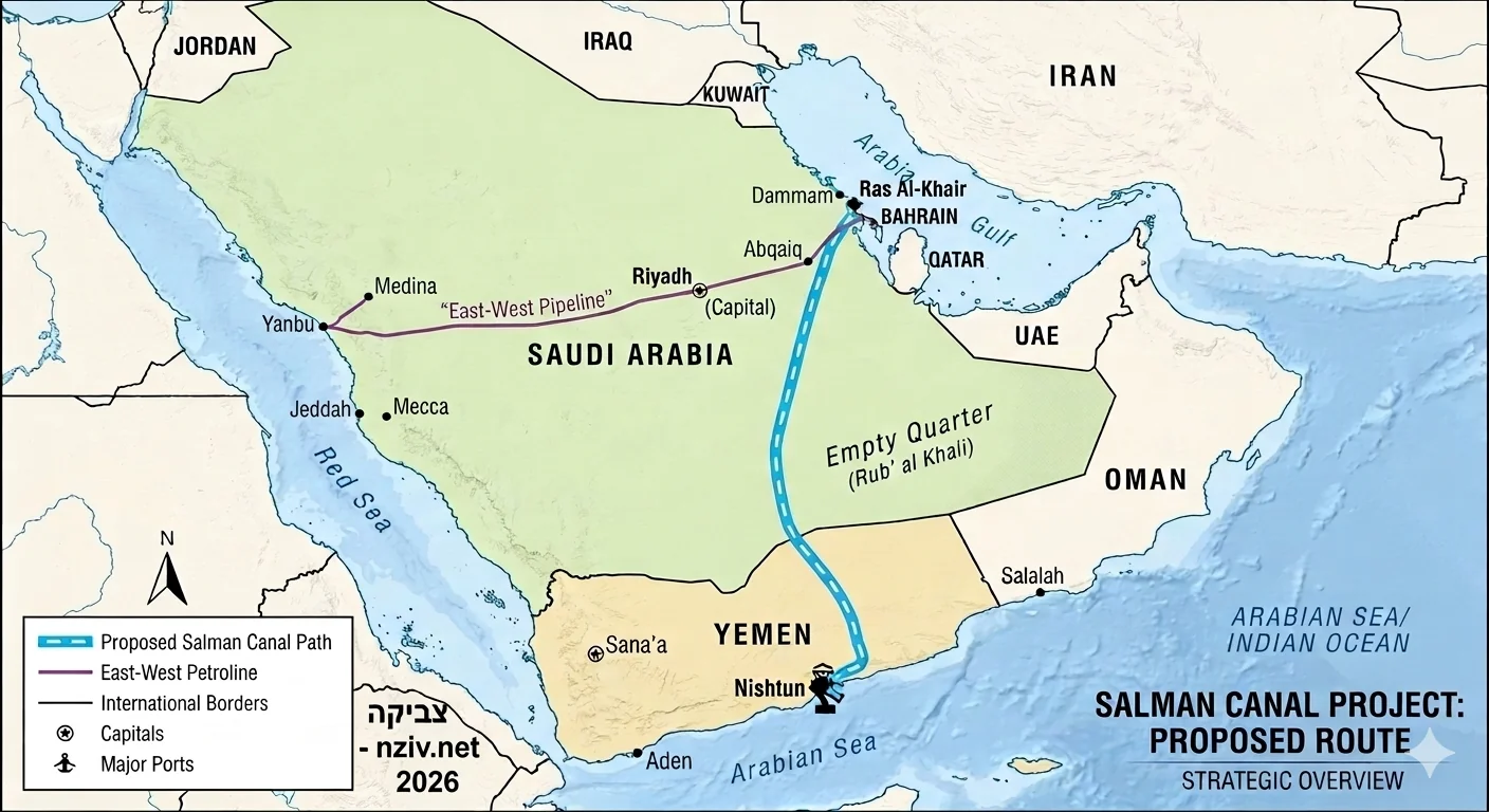 - גמישות לוגיסטית: בדומה לצינור הנפט "מזרח-מערב" (Petroline) של סעודיה שמוביל נפט לים האדום, התעלה תאפשר הובלה ימית מאסיבית גם של גז (LNG) וסחורות אחרות שאינן יכולות לעבור בצינורות.