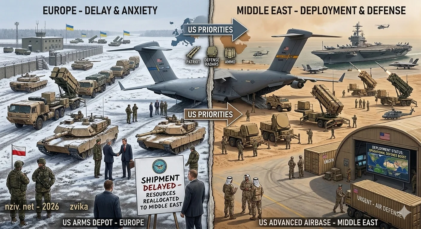 • עיכובים באספקה לאירופה: מדינות האיחוד האירופי עודכנו כי משלוחי נשק אמריקניים, בדגש על מערכות הגנה אווירית (כמו טילי מיירט של מערכת הפטריוט) ותחמושת, עלולים להתעכב.