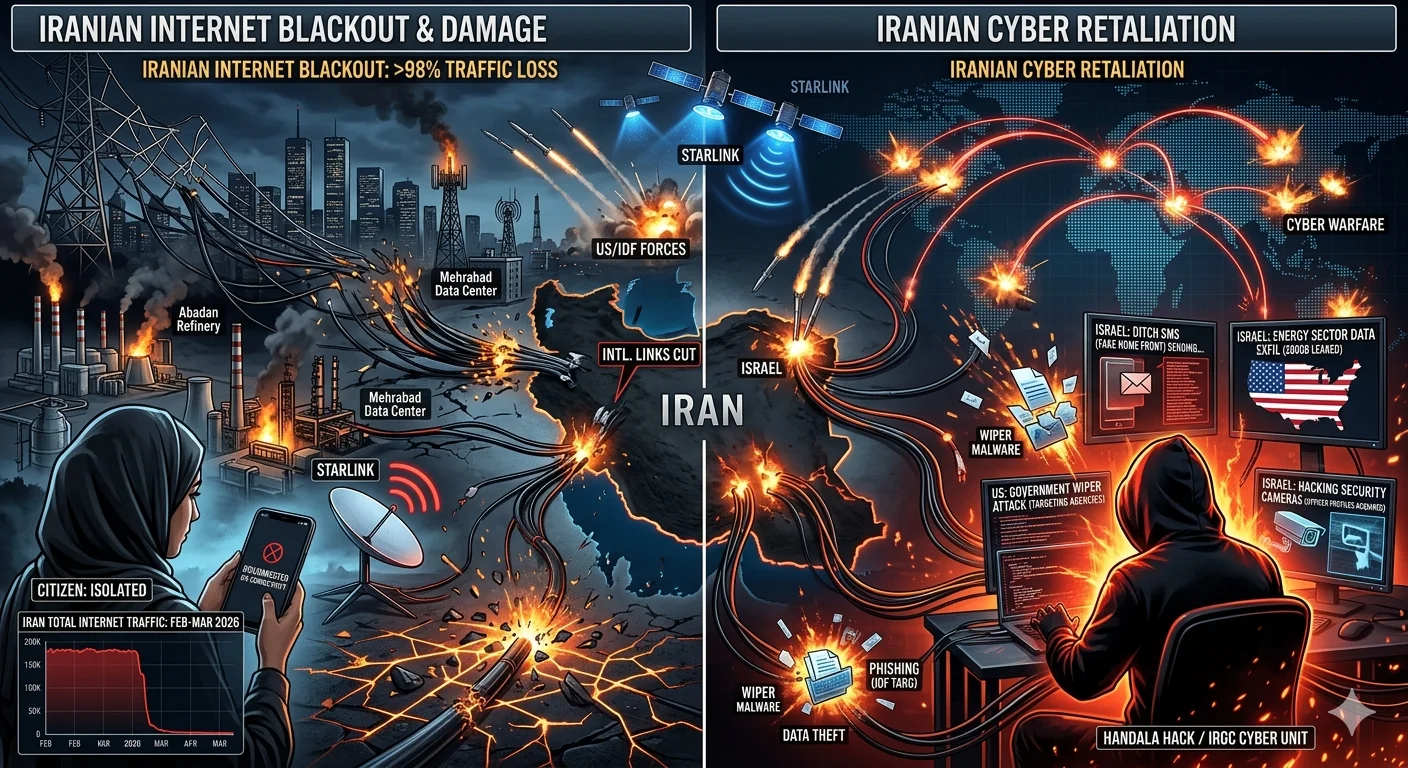 - קריסת הקישוריות: ב-28 בפברואר 2026 נרשמה צניחה מיידית של כ-98% בתעבורת האינטרנט במדינה. הקישוריות העולמית של איראן ירדה לרמה של פחות מ-1% מהנורמה למשך למעלה מ-10 ימים.