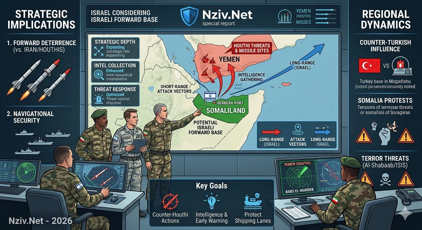 ישראל בוחנת הקמת בסיס צבאי קדמי בסומלילנד, רפובליקה בהכרזה עצמית הממוקמת בקרן אפריקה, וזאת בעקבות הכרתה הרשמית של ישראל בעצמאותה בדצמבר 2025.