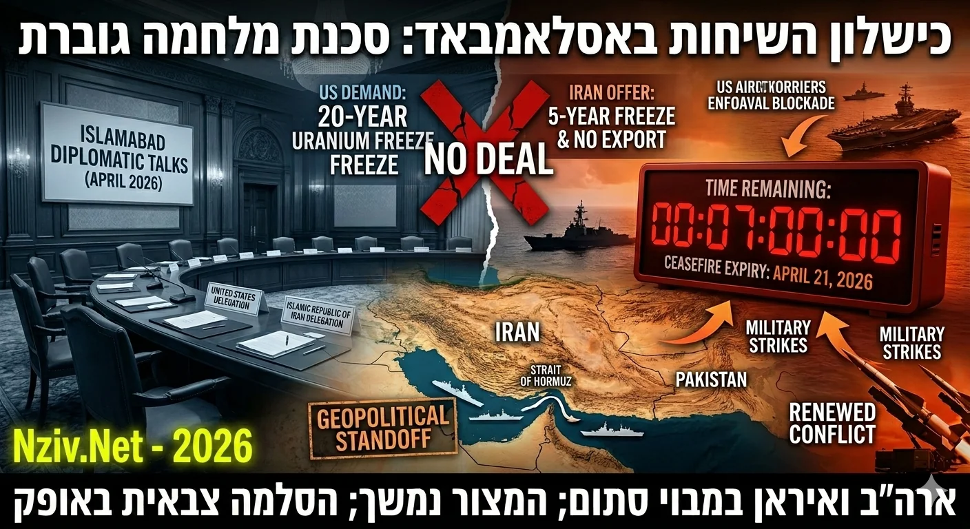 - חלון זמן קצר: המשא ומתן מתנהל תחת לחץ זמן של הפסקת אש זמנית בת שבועיים שאמורה לפוג ב-21 באפריל 2026.