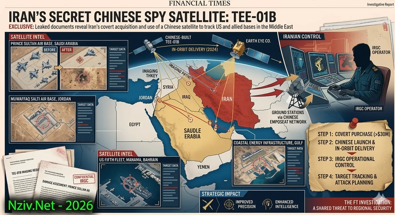 על פי תחקיר של ה"פייננשל טיימס" (Financial Times) שפורסם ב-15 באפריל 2026, איראן רכשה בחשאי לוויין ריגול סיני מתקדם כדי לעקוב אחר בסיסים צבאיים של ארצות הברית ובעלות בריתה , ישראל במיוחד, במזרח התיכון.