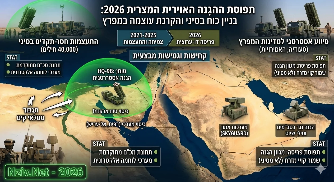 - מערכות HQ-9B סיניות: סוללות ארוכות טווח (עד 300 ק"מ) הוצבו באזורי אל-עריש ורפיח. אלו מערכות שמקבילות ביכולותיהן ל-S-400 הרוסי והן יוצרות "בועת הגנה" (A2/AD) המכסה את כל שמי עזה ודרום ישראל עד גוש דן.