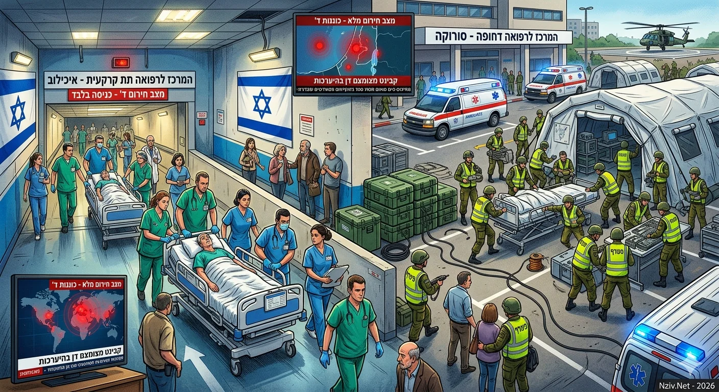 המעבר של בתי החולים למצב חירום מלא (רמת כוננות ד') וכינוס הקבינט המצומצם מצביעים על היערכות מיידית להסלמה רחבת היקף. המשמעות היא מעבר של מערכת הבריאות מ"שגרה" ל"פעילות חיונית" בלבד, תוך פינוי משאבים לטיפול בנפגעי מלחמה.