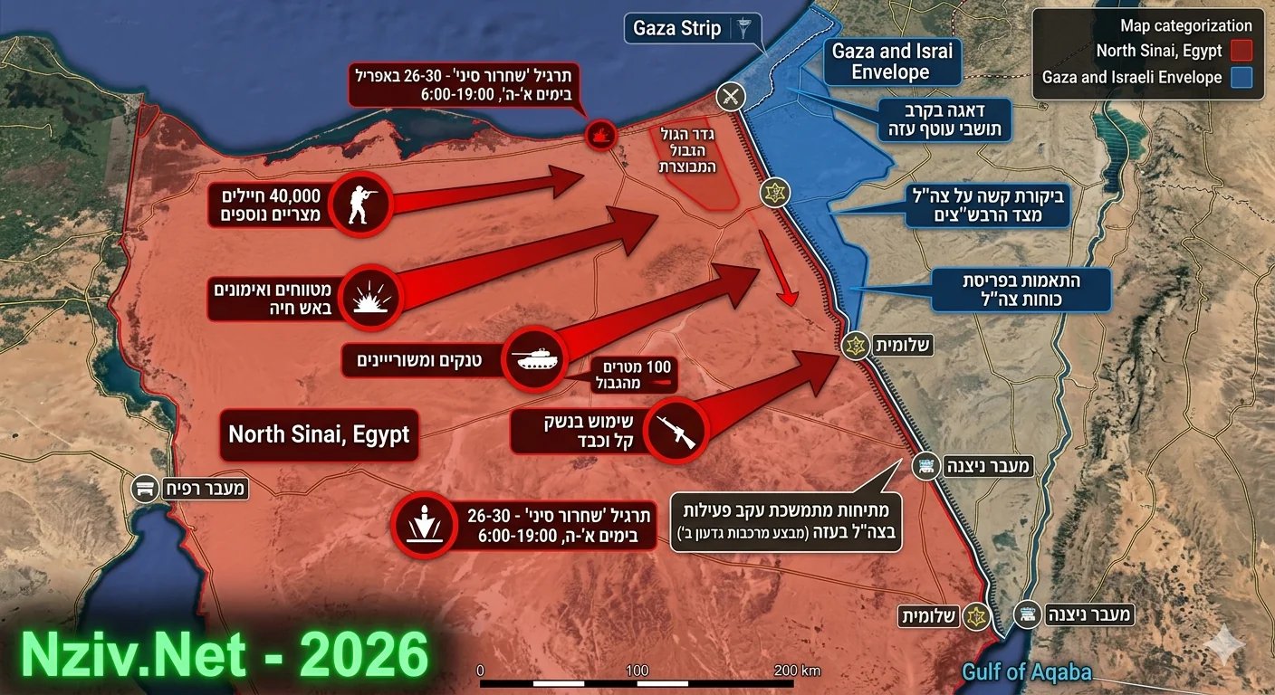 - תיאום עם ישראל: צה"ל עדכן את רכזי הביטחון (רבש"צים) ביישובים הסמוכים כי הפעילות מאושרת ומפוקחת. לפי מערכת הביטחון, כל הכנסת כוחות או פעילות חריגה בסיני מתבצעת בתיאום במסגרת הנספח הצבאי להסכם השלום.