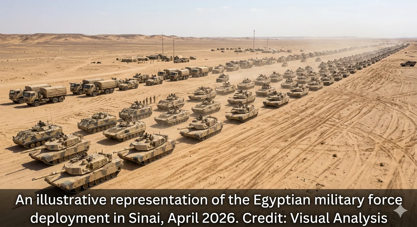 פירוט סדר הכוחות (סד"כ) של צבא מצרים בסיני במסגרת התרגיל הנוכחי (אפריל 2026) משקף עיבוי משמעותי וחריג של כוחות בקרבת הגבול הישראלי, תוך חריגה ניכרת מהמגבלות המקוריות של הסכם השלום.