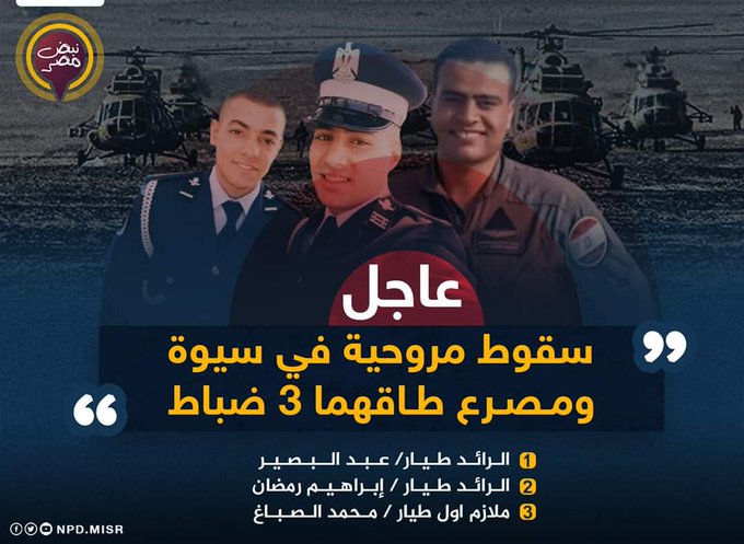 פעילים במדיה החברתית במצרים הפיצו חדשות שהצביעו על התרסקות מסוק ליד העיר סיווה שבמדבר המערבי הגובל בלוב, ועל מותם של כל חברי הצוות שכלל ארבעה קצינים מצריים. דיווח אחר טוען כי המסוק נפל בשטח לוב .