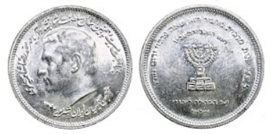 בצד הפנים של המטבעות רואים את פני השאה, וכיתוב בפרסית ובצד השני, רואים את מנורת שבעת הקנים, עם הכיתוב בעברית על המטבע: