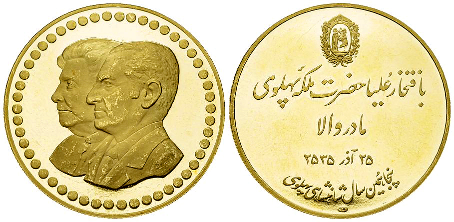 בתמונות המצורפות תוכלו לראות את המטבעות ומדליות זהב, שהוצאו לציון חגיגות היובל לשושלת פהלווי, ע"י הבנק המרכזי האיראני, וע"י בנק Melli הבנק המסחרי הלאומי הראשון של איראן.