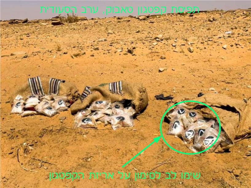 נתחיל בסיפור של התפיסה הקטנה של הזמן האחרון, ב 5 ביולי, באזור טאבוק, נתפסו שני אזרחי ירדן שעברו את הגבול, ונשאו איתם שלושה שקים שהכילו 360 אלף כדורי קפטגון.