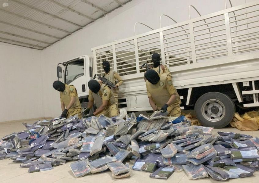 דובר משמר הגבול הסעודי, סא"ל אל-קורייני, אמר שבעקבות עבודה מודיעינית, ומעקב אחרי כנופיות מבריחי סמים, בים, באוויר וביבשה, זיהתה תצפית בשטח, את שני אזרחי ירדן כשהם בדרכם לחצות את הגבול, וסיורים של משמר הגבול נשלחו למקום בו בוצע מעבר הגבול, ועצרו את שניהם, עם הסמים שברשותם. (ואני לא מנסה לשאול, איך יש שני עצורים, ושלושה שקים גדולים…)
