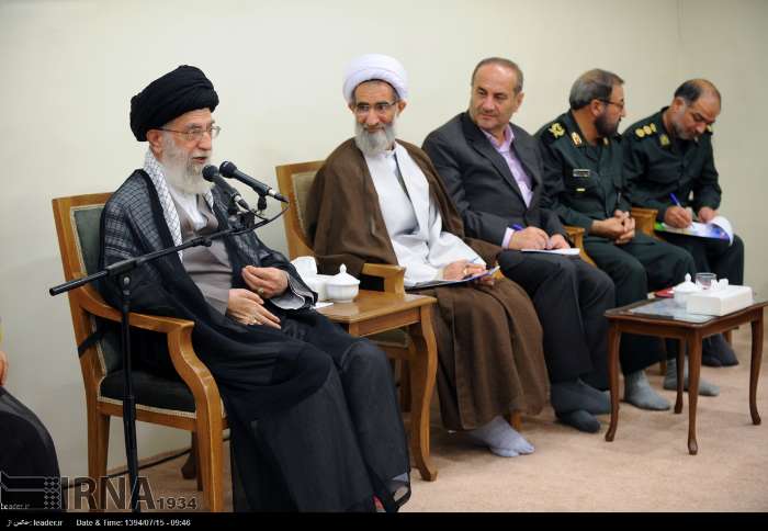 ראו תמונות מצורפות, של המנהיג העליון פגישה בפגישה עם מפקדים במשמרות המהפכה ואייתוללות, למרות שהם לא במסגד, הם ללא נעליים, ועם מנהיג ארגון הטרור הג'יהאד האיסלאמי, זיאד אל-נחלה וחברים, וכן פגישה של חומיני עם חאפז אל-אסד.