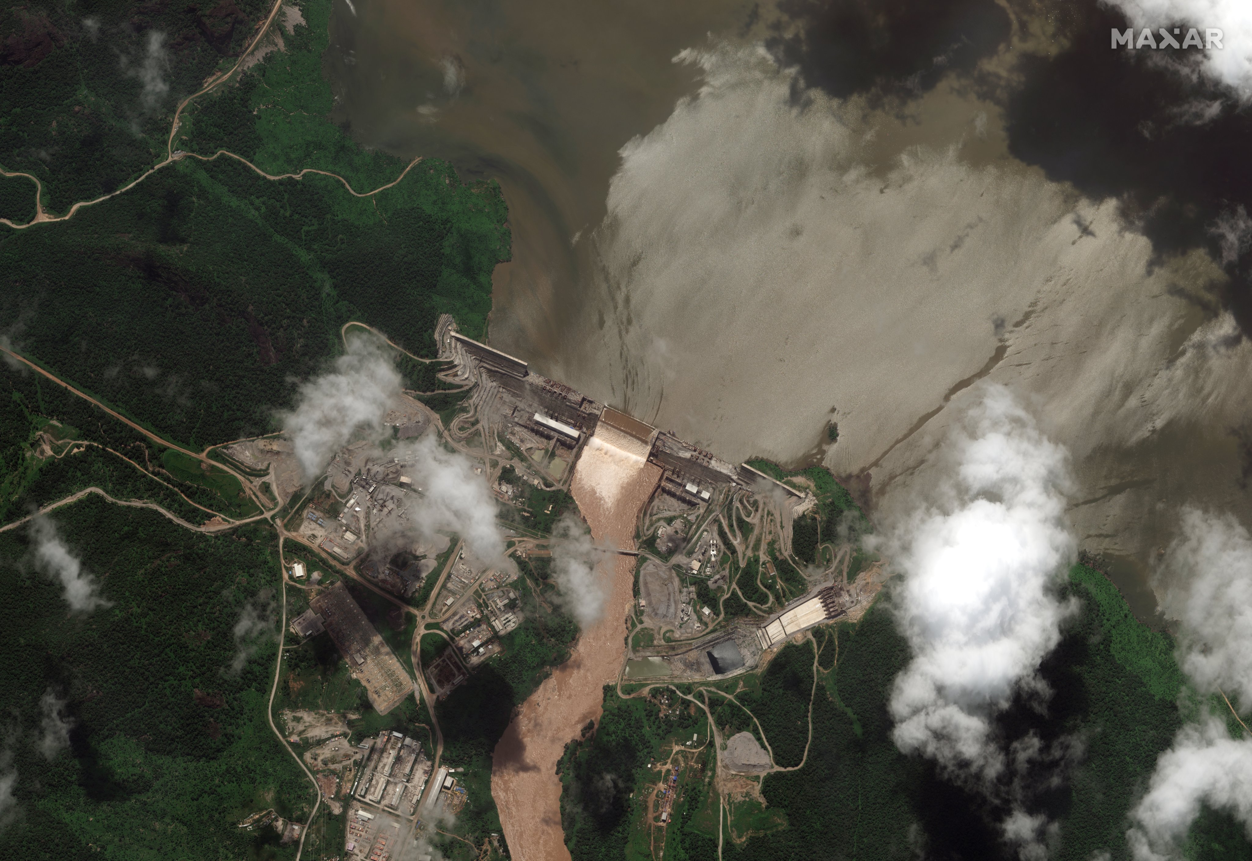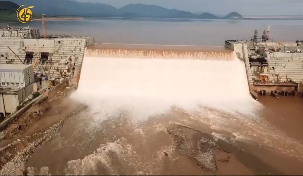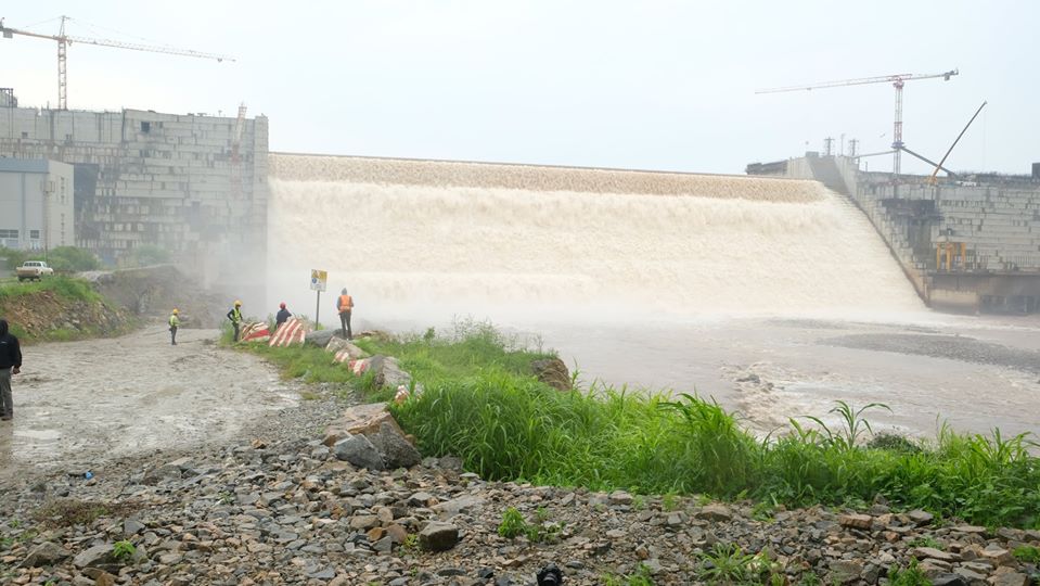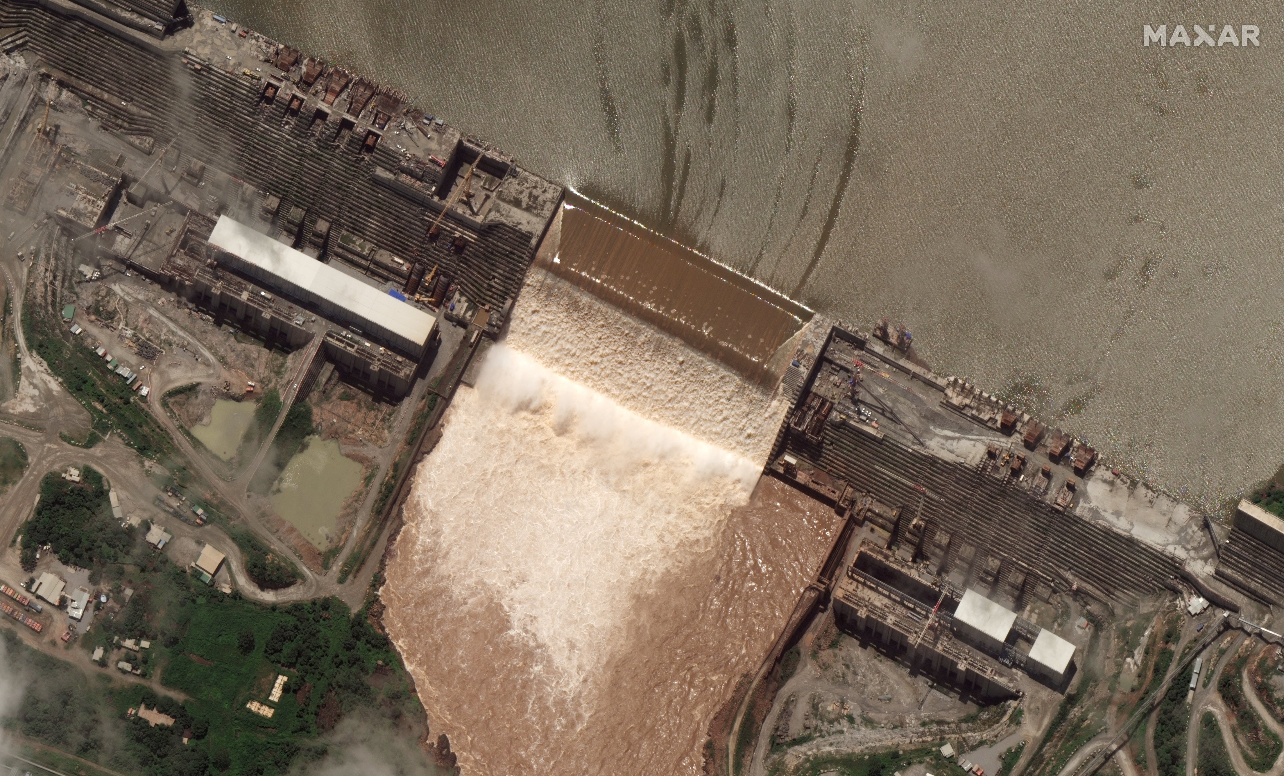 ובנוסף גם תמונות המראות את זרימת המים במגלשת המים המרכזית של סכר הרנסנס, התמונות צולמו בן ה 26 ל 28 ביולי.