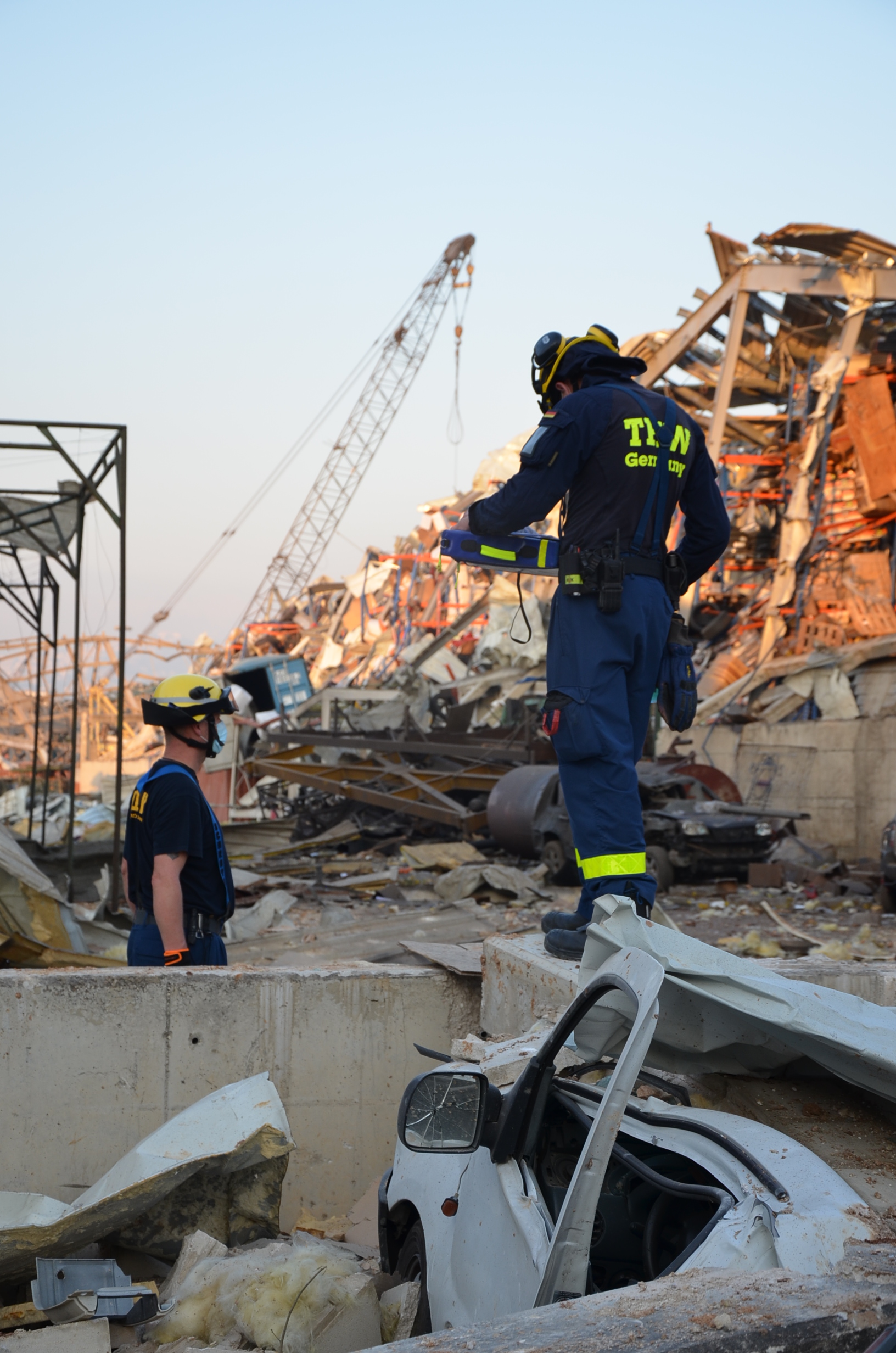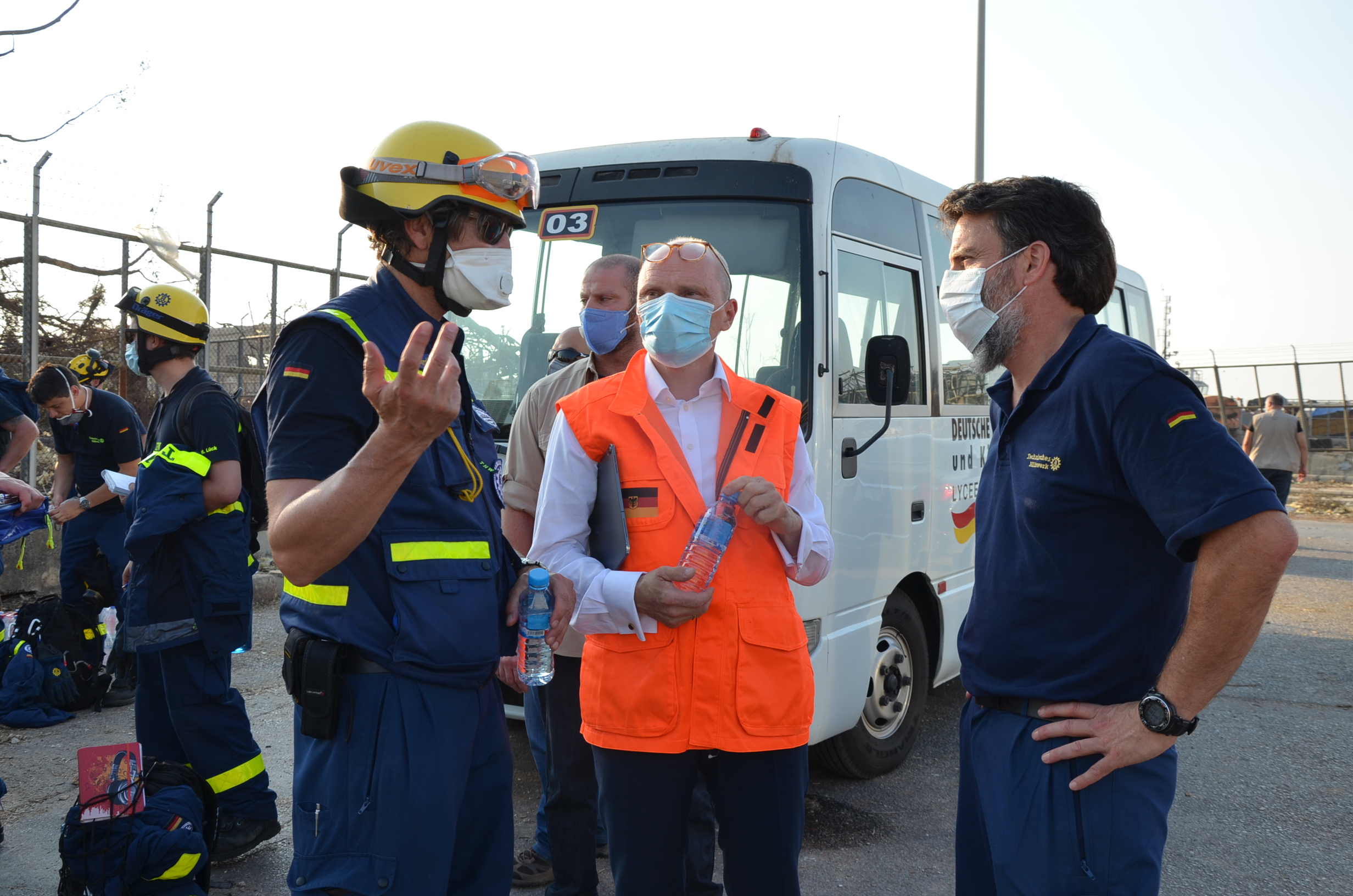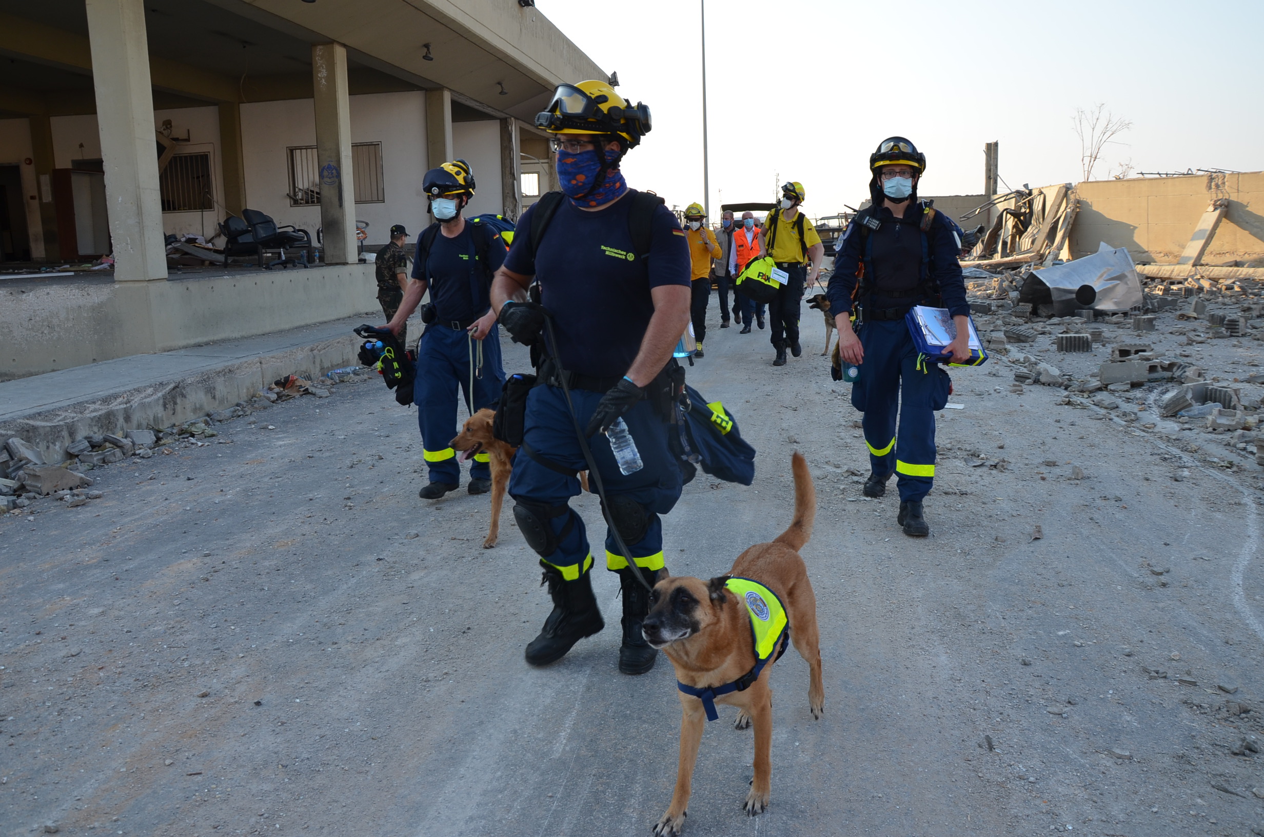 הרשויות בלבנון אישרו למשלחת הצלה גרמנית להגיע גם עם כלבי הצלה, אבל הכלבים לא הורשו להיכנס לאזור הנמל. צוות SEEBA של 50 איש + 4 כלבים של מהסוכנות הפדרלית הגרמנית לסיוע טכני