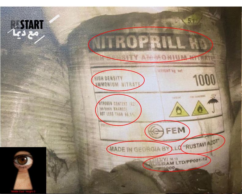 כשבוחנים את הצילומים המטושטשים, ניתן לראות פרטים נוספים שמשלימים את התמונה שנראתה בתמונה שהופצה מיד לאחר האסון, וניתן למרות איכות התמונות הירודה, להבחין בשם היצרן, בסוג החומר, ושמדובר על תכולה של לא פחות מ 96.5% אמוניום ניטראט, ואף בלוגו שלידו האותיות FEM ופרטים נוספים, שלכולם יש חשיבות בהבנת התמונה המלאה והסיפור שמאחורי הסיפור, ובמקביל עולה השאלה למי היה האינטרס לפרסם את התמונות האלה בעיתוי הזה, ומדוע התמונות באיכות כה ירודה, כשכל טלפון נייד ממוצע, יכול להוציא צילומים טובים בהרבה, גם בתנאי התאורה והאבק שבמחסן…