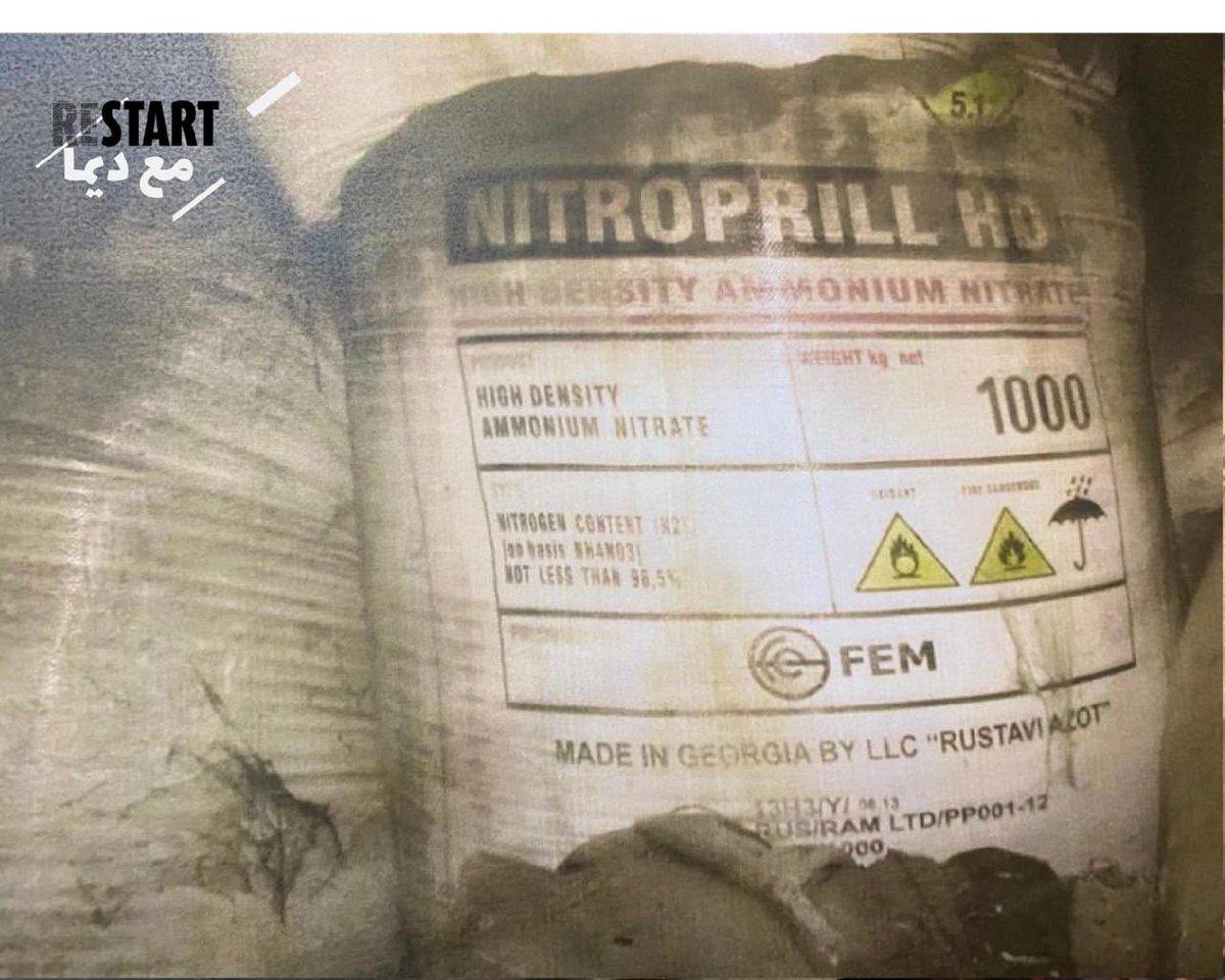 שהחברה המייצרת את החומר הנקרא Nitroprill היא חברה גרוזינית בשם Rustavia Zot המייצרת מגוון מוצרים כולל דשנים, וביניהם גם אמוניום ניטראט, ושכיום לא ניתן למצוא את המוצר הזה, בין המוצרים המוצעים ע"י החברה, ויש רק שקי אמוניום ניטראט כדשן חקלאי במשקל 50 ק"ג ושל 500 ק"ג והתמונה היחידה באתר החברה, של המוצר בשם Nitroprill, נשארה רק בעמוד הראשי בתמונת הבאנר בראש העמוד, שבה רואים את השקים הדומים לאלו שבצילומים שהופצו מלבנון וכשחופרים קצת יותר מגלים שהמוצר Nitroprill של החברה, שווק עם תכולה של לפחות 96.5% אמוניום ניטראט.