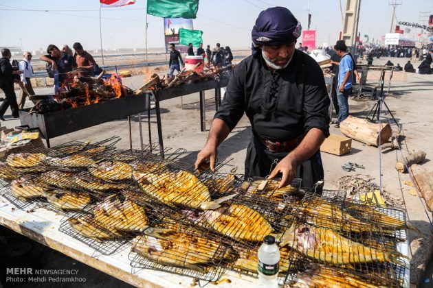 לאורכו של המסלול ישנם 1400 עמודים המסמלים את השנים שעברו לפי לוח השנה ההיג’רי, מאז קרב כרבלא המפורסם ומותו של האימאם חוסיין, וכרגיל נראה את המחזות של שולחנות ודוכני אוכל, שהעולים לרגל מקבלים בחינם וללא כל תמורה, כתרומה של אנשים לאורך הדרך, וכן גם מרפאות זמניות, בהם מקבלים עולי הרגל טיפול רפואי בחינם, ואפילו דוכני צחצוח נעליים.