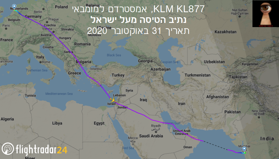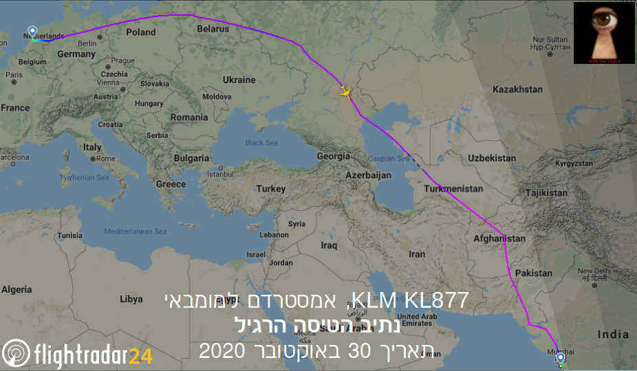 טיסת KLM מספר KL877 שהמריאה בשעה 11:57 זמן מקומי, מהולנד – מנמל סכיפהול באמסטרדם (סימול קוד יאט”א: AMS), בדרכה אל הודו – נמל התעופה מומביי צ'הטרפטי שיוואג'י (סימול קוד יאט”א: BOM), (Chhatrapati Shivaji Maharaj International Airport, Mumbai) ונחתה במומבאי בשעה 04:27 זמן מקומי, נכנסה למרחב האווירי מעל ישראל כשלוש וחצי שעות מההמראה.