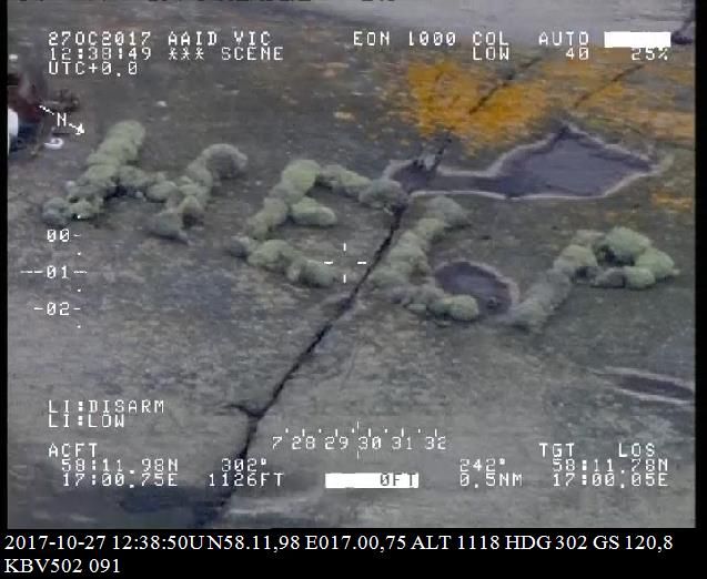 הוא כתב באמצעות טחב שמצא את המילה HELP בגדול כדי למשוך תשומת לב כלי טייס שעברו באזור.
