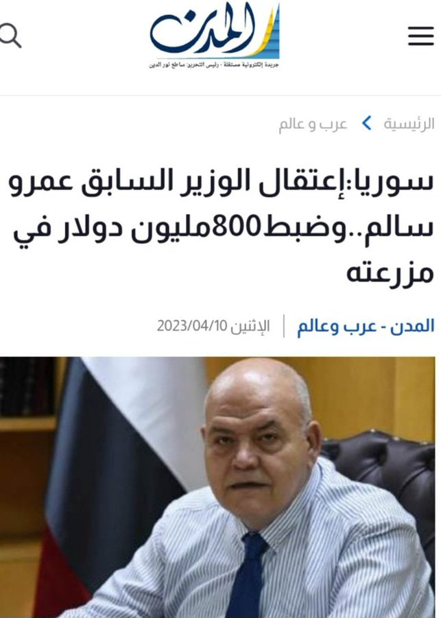 מקור יודע דבר אישר לאתר החדשות הלבנוני – אל-מודון כי המשטר הסורי עצר את שר סחר הפנים והגנת הצרכן המפוטר, עמר סאלם, לחקירה באשמת קשרים עם המודיעין האמריקאי לאחר שחקירות גילו את מעורבותו בפרשות שחיתות ועסקאות חשודות.