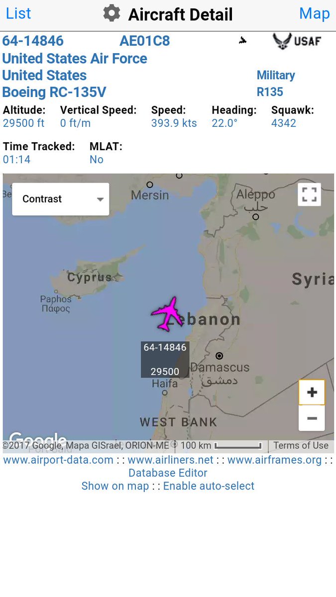 מטוס ביון אמריקאי USAF RC-135V 64-14846 BLUR98 המריא בשעה03:40 לפנות בוקר משדה תעופה צבאי במפרץ סודה שבסיציליה .