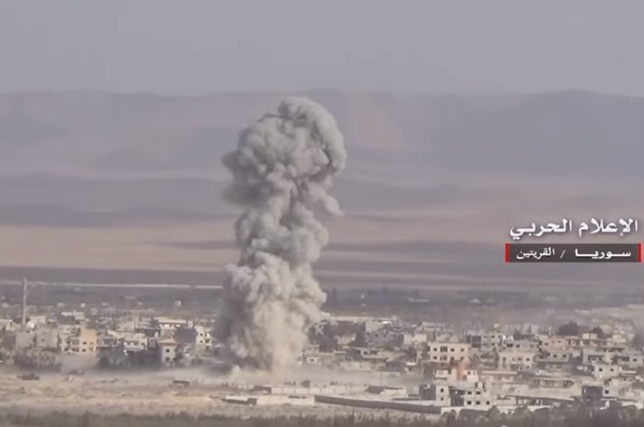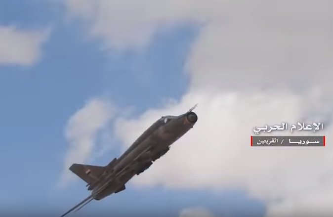 *- מטוס סוחוי-22 של חיל האוויר הסורי מפציץ עמדות דאעש בקרייתיין סוריה: