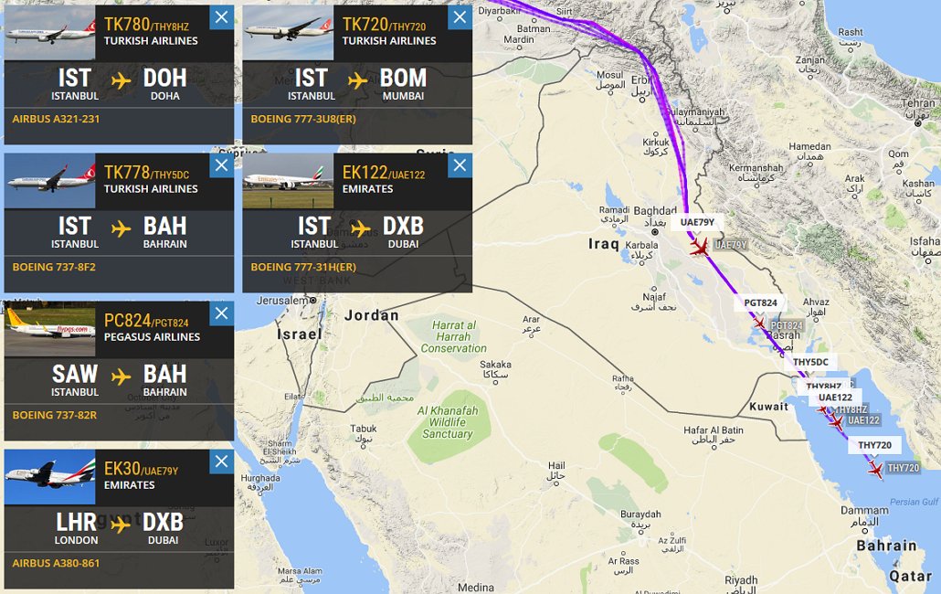 *- לראשונה מזה יותר משנתיים חברת התעופה הלאומית של טורקיה החלה לעבור בשמי עירק בדרכם דרומה ולא לעבור יותר בשמי אירן הצפופים.