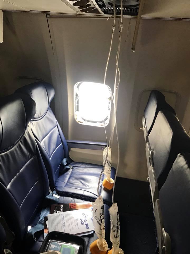 *- מטוס נוסעים שהמריא אתמול מניו יורק לדאלאס חווה כשל מנועי חמור ורסיסים מהמנוע פרצו חלון במטוס והרגו את הנוסע שישב ליד חלון זה.