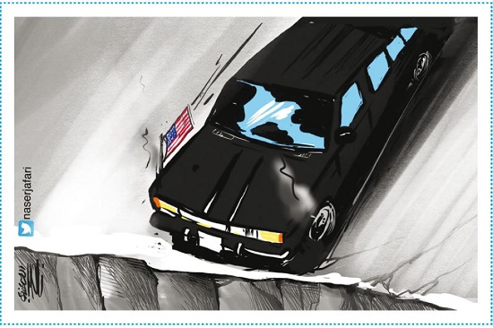 העיתון הירדני, אל-ראי, הביע באמצעות קריקטורות את תמיכתו בסצנה האמריקאית הנוכחית, שכן הוא מתאר את אמריקה ברכב שכמעט נפל לתהום
