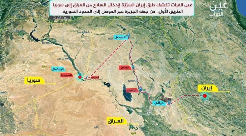 מפה של אחת הדרכים ” הסודיות ” לכאורה של איראן להברחת נשק לסוריה דרך שטח עיראק הוצגה בתקופה האחרונה בה