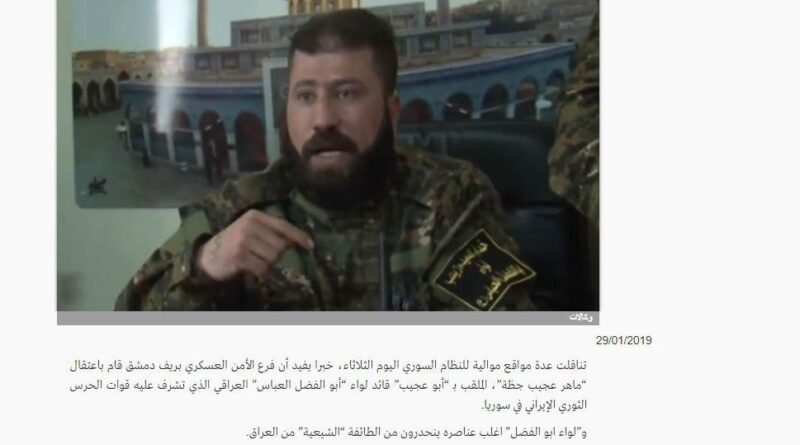 קרא עודמספר אתרי חדשות המקורבים למשטר אסד בדמשק טוענים כי המודיעין הצבאי הסורי עצר את מפקד המיליציה העירקית-שיעית הנתונה לפיקודם של