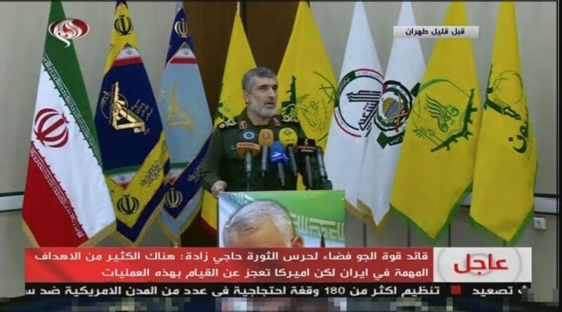 *- מפקד חיל האוויר של משמרות המהפכה האיראנית (IRGC), אמיר עלי חג’יזדה, נראה במסיבת עיתונאים, ששודרה ביום חמישי על ידי הטלוויזיה