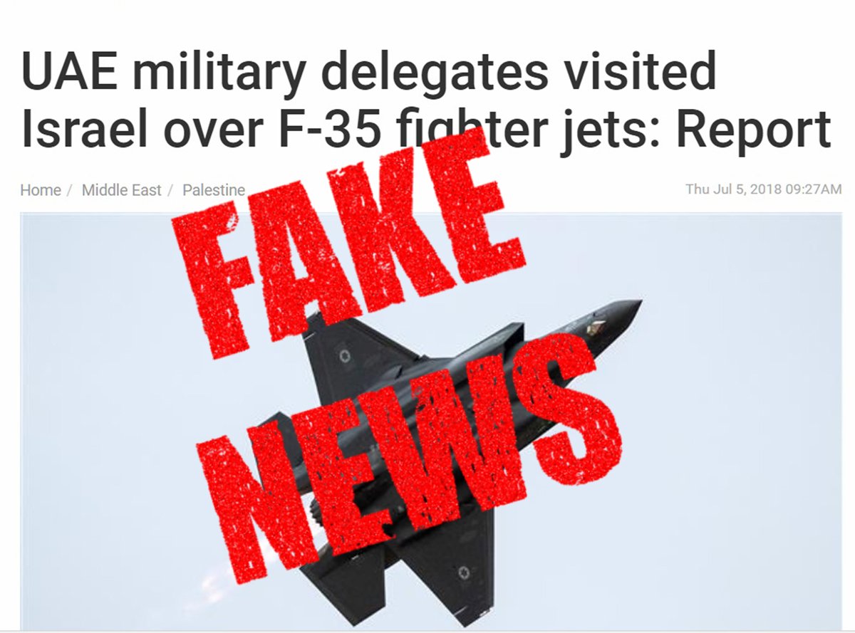 “משלחת מאיחוד האמירויות במפרץ הפרסי בקרה בישראל כדי לבחון את מטוס האפ-35 האמריקאי שישראל רכשה”.
