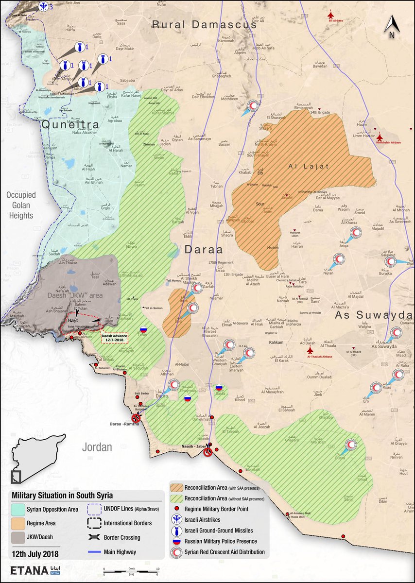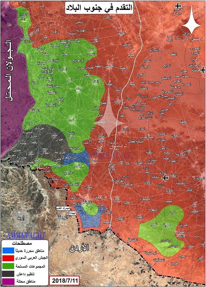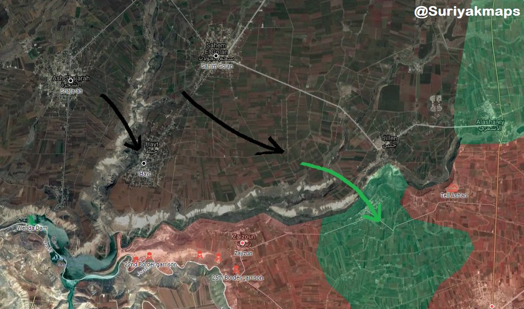 *-מפת פריסת הכוחות במערב מחוז דרעא: