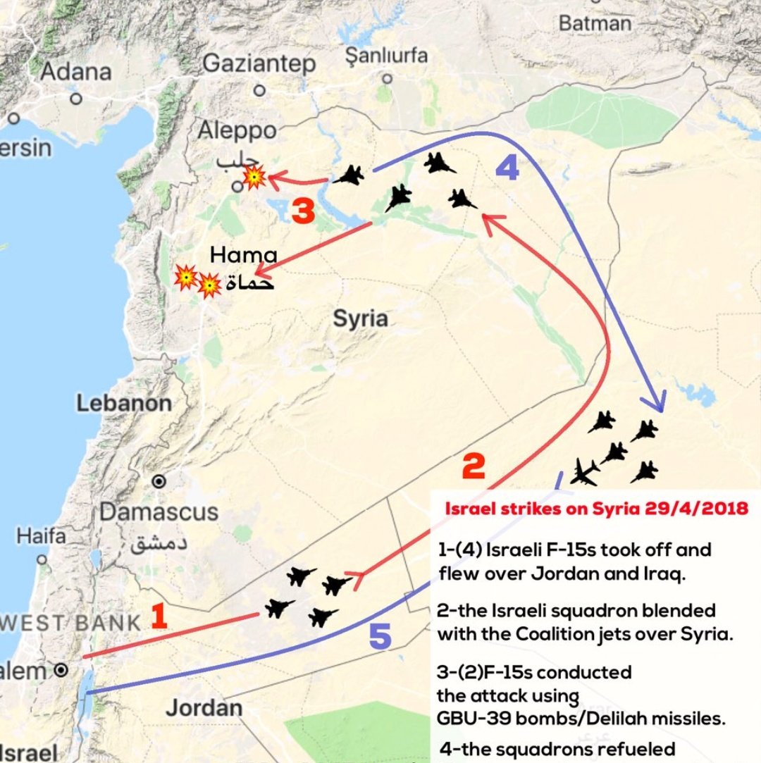 *- על פי ניסיון העבר כשישראל תקפה מטרות באזור חאלב או חמה היא השתמשה במסלולים אלו כדי להביא את מטוסי הקרב לקרבת המטרות המותקפות.