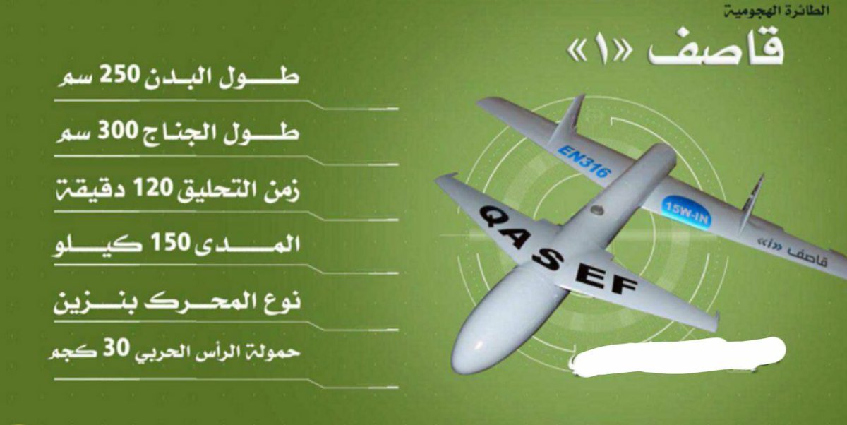 מומחים מאמינים כי הכוחות החות’ים השתמשו בטילים בליסטיים מדגם באדיר-1 המונעים בדלק מוצק,המיוצר בתימן והוא העתק נאמן למקור האירני – הטיל פאג’ר -3 , וכן עשו שימוש בכטב”מים תוקפים מסוג כאסף-1 , מתוצרת תימן,שהוא העתק של הכטב”מ האירני אבאביל-2 .