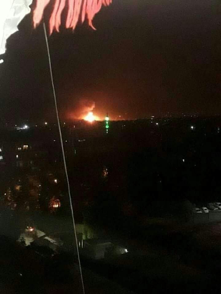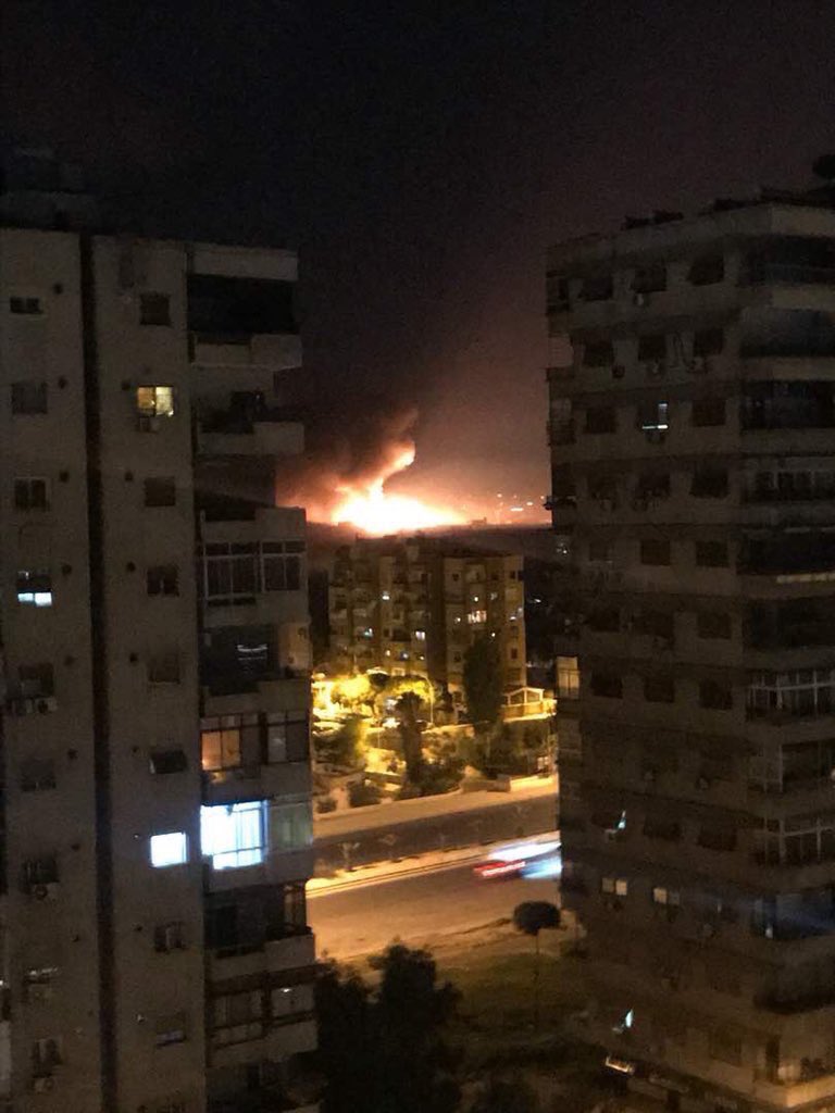 معلومات أولية: هجوم بأكثر من 4 طائرات حربية تابعة للتحالف الدولي على مخازن الاسلحة الاستراتيجية في مطار #المزة في #دمشق