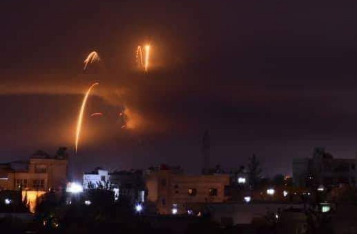 خمسة صواريخ معادية استهدفت مستودعات للذخيرة في #مطار_المزة العسكري تم تدمير معظمها في حين تسمع أصوات المضادات الأرضية وصواريخ أرض-جو في أرجاء العاصمة #دمشق الى الآن منقول من ضاحية الأسد -plus