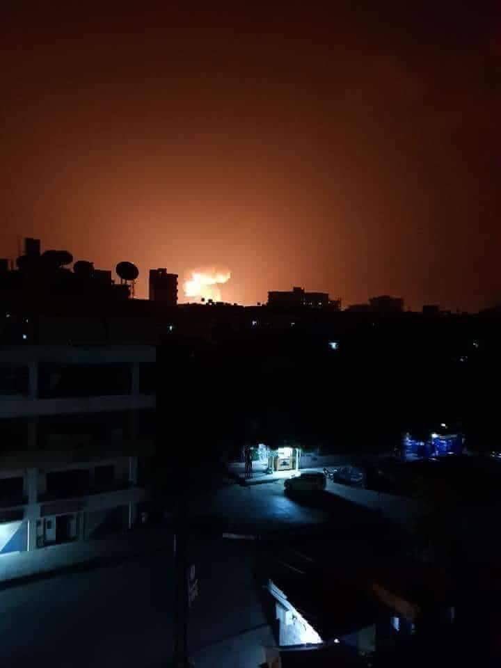 التلفزيون السوري يعرض صورا لاحتراق مقر المؤسسة العامة للصناعات التقنية في #اللاذقية بعد استهدافه بصواريخ في "عدوان غير معروف المصدر" pic.twitter.com/dznG6FKtnE