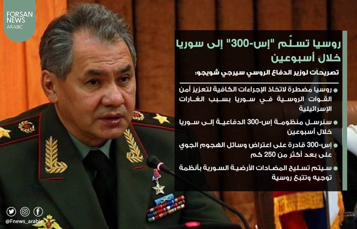 *- שר ההגנה הרוסי הודיע כי מדינתו תהיה מוכנה לספק סוללות טילי נ”מ מדגם אס-300 תוך שבועיים. והמשמעות שרוסיה נותנת לארה”ב שבועיים להשלים את המו”מ איתה כדי למנוע זאת.