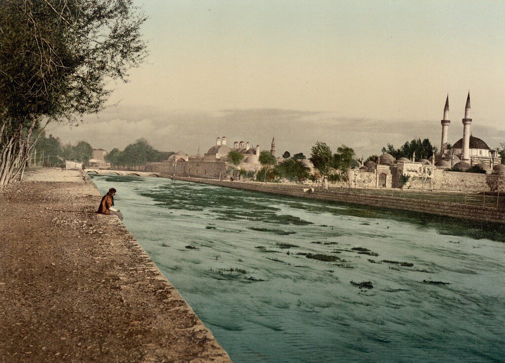 *- תמונה של נהר בראדה החוצה את דמשק משנת 1890 .